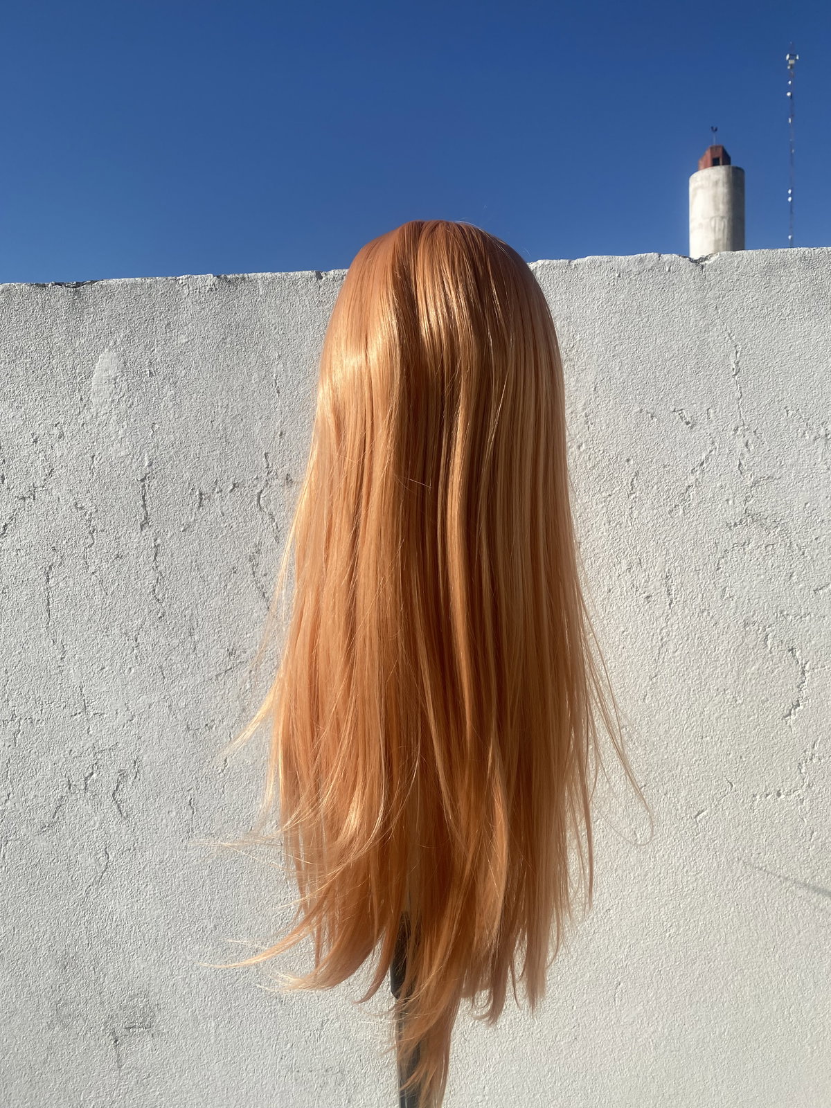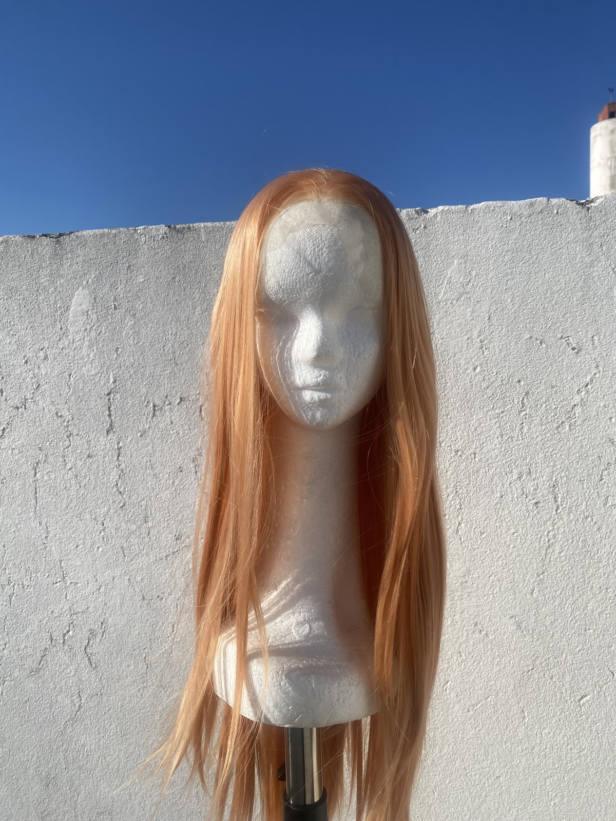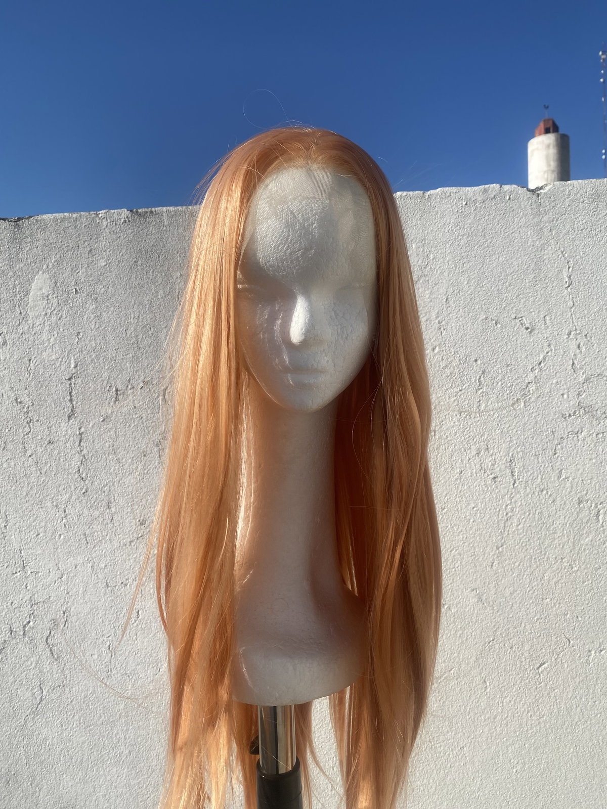 Peluca sintética termorresistente, con lace 13x4 en toda la frente, casco elástico y peinetas internas para un mejor agarre.
