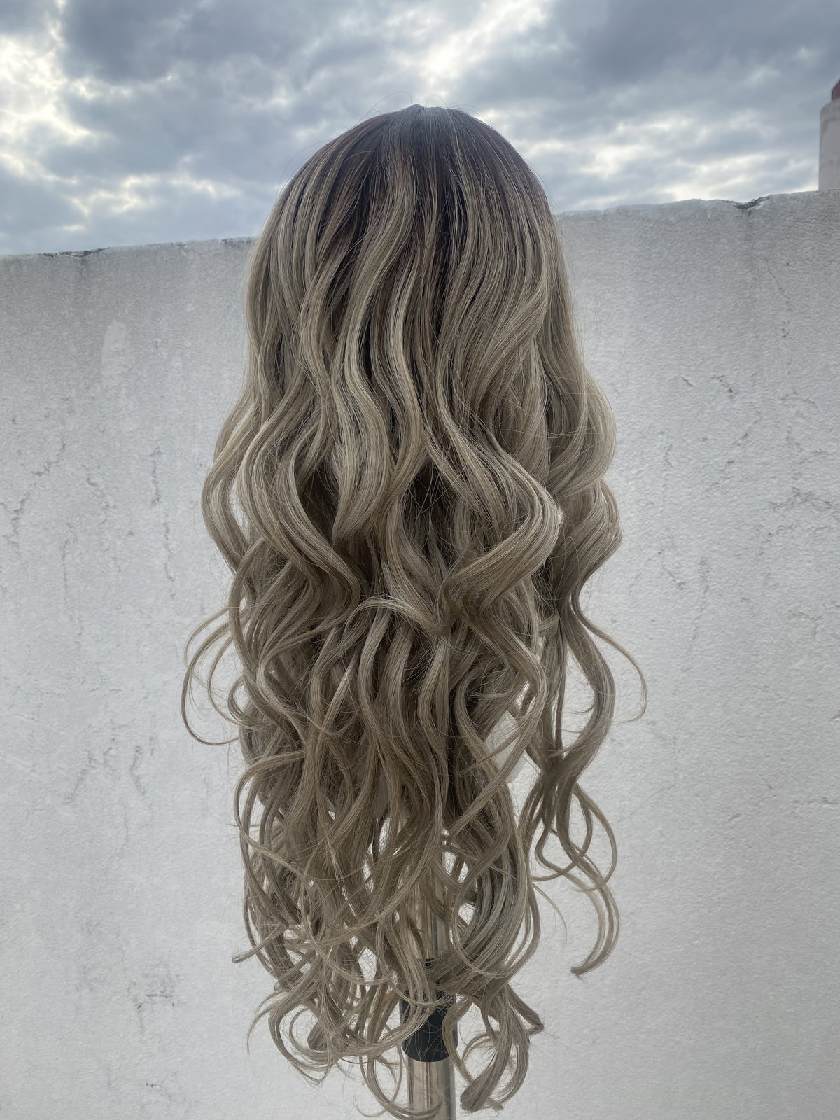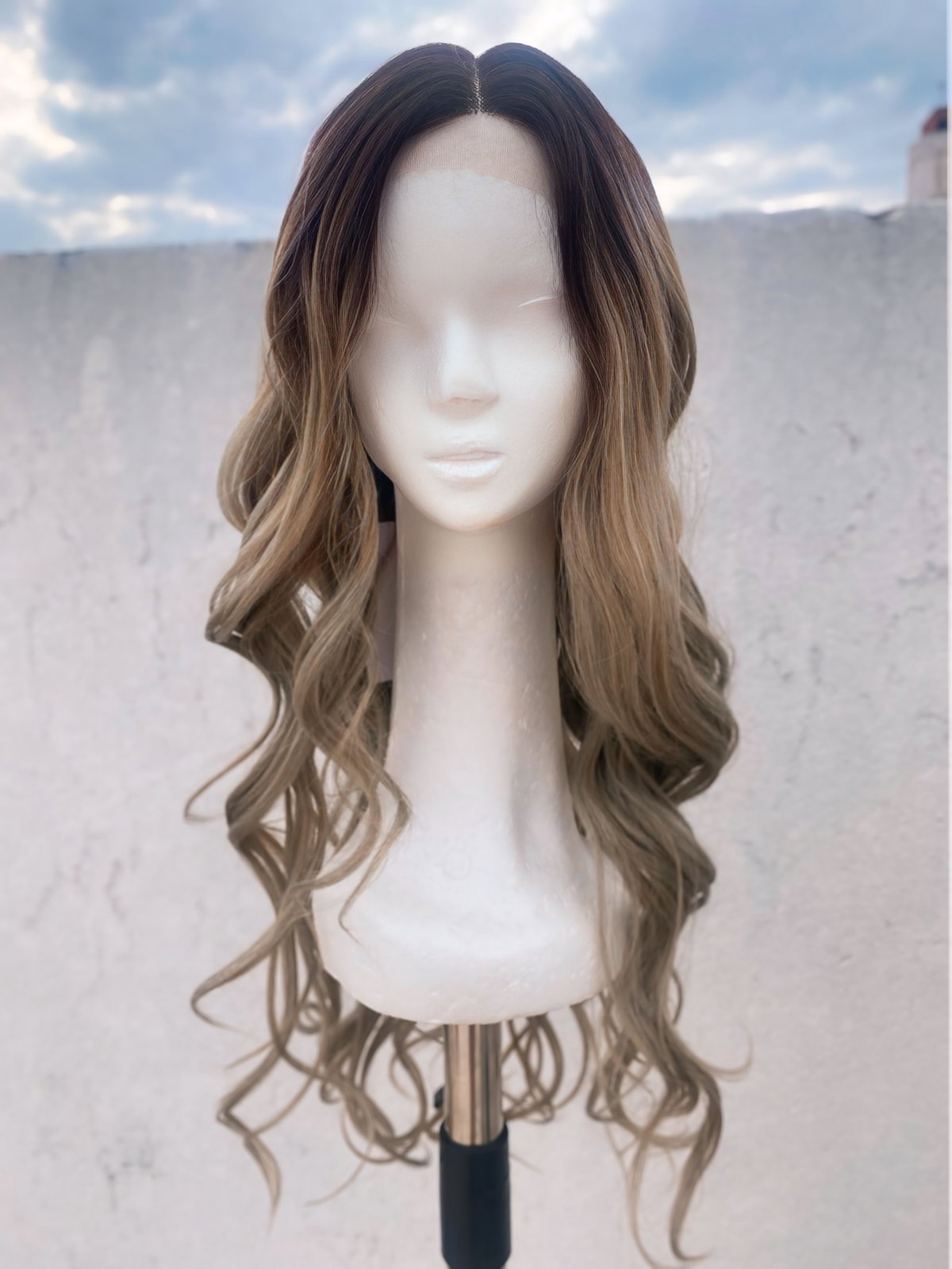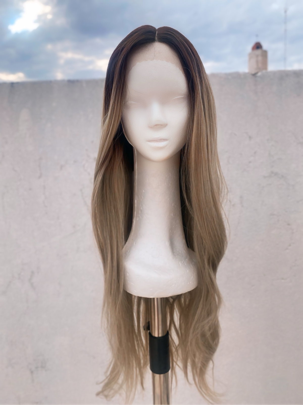 Peluca sintética termorresistente, con lace en la linea central, casco elástico y peinetas internas para un mejor agarre.