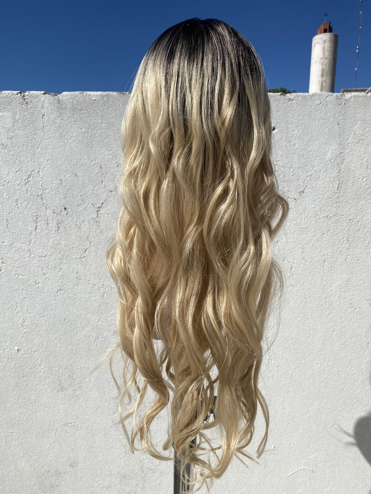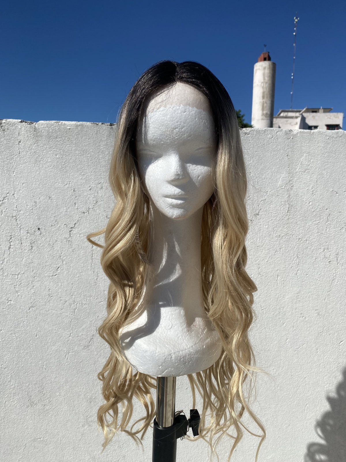 Peluca sintética termorresistente, con lace en la linea central, casco elástico y peinetas internas para un mejor agarre.