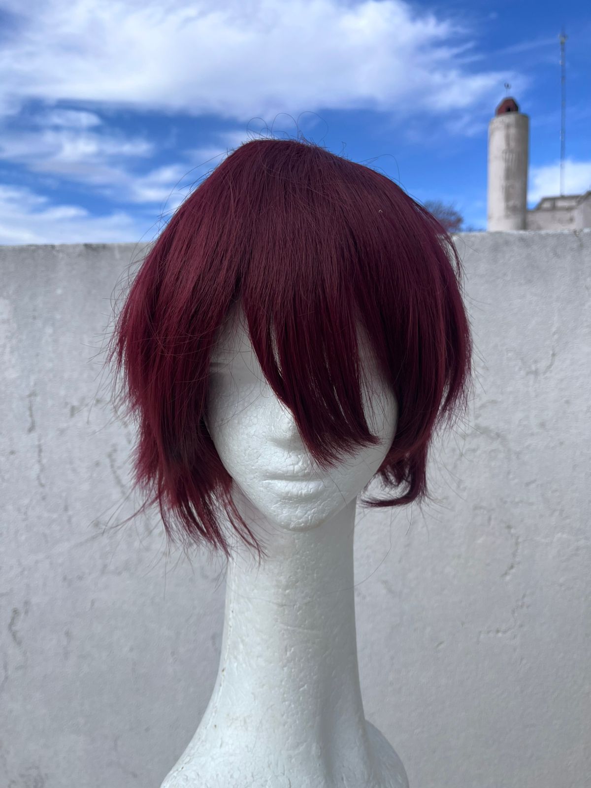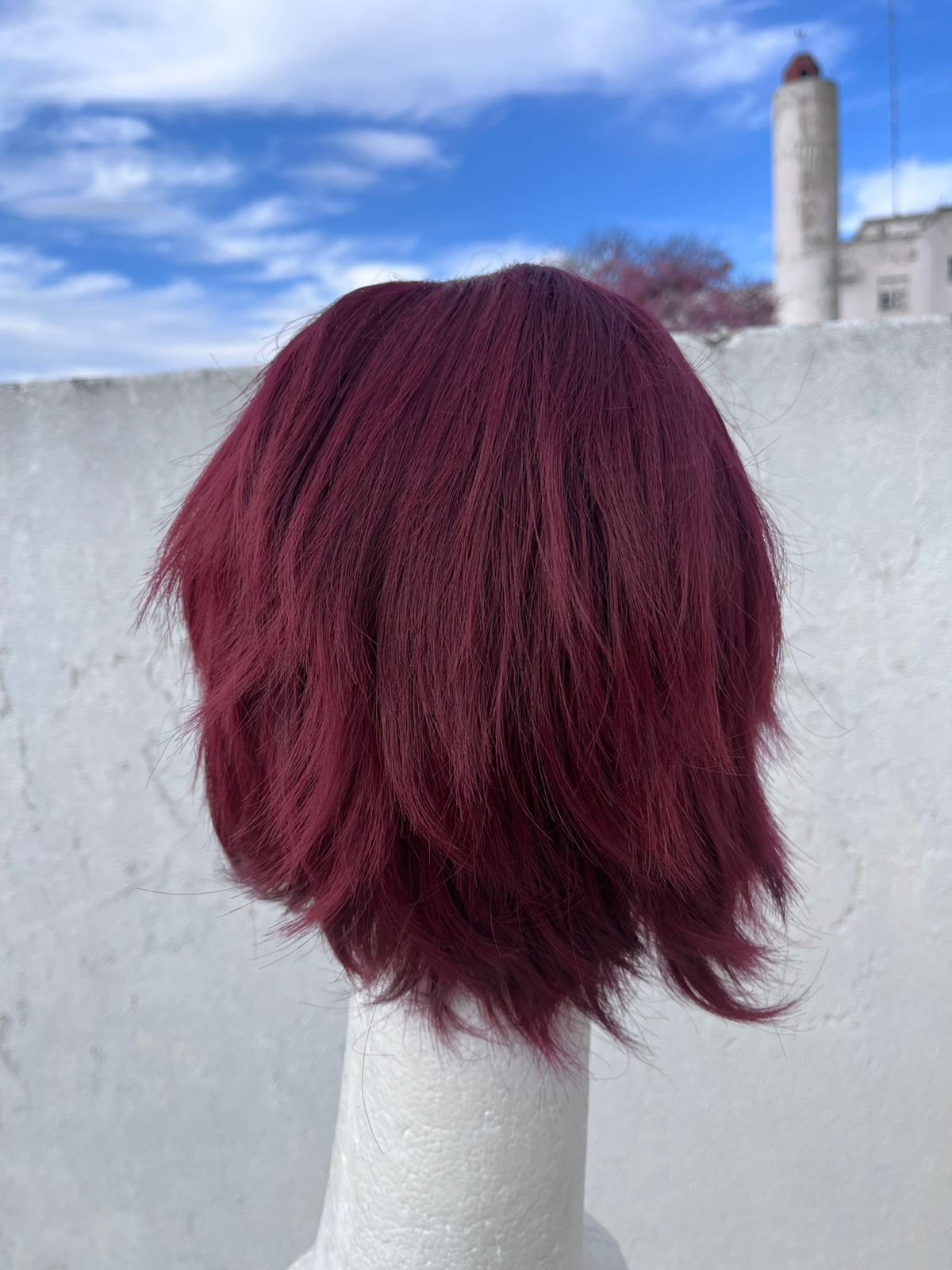 Peluca sintética termorresistente, casco elástico y corte desmechado