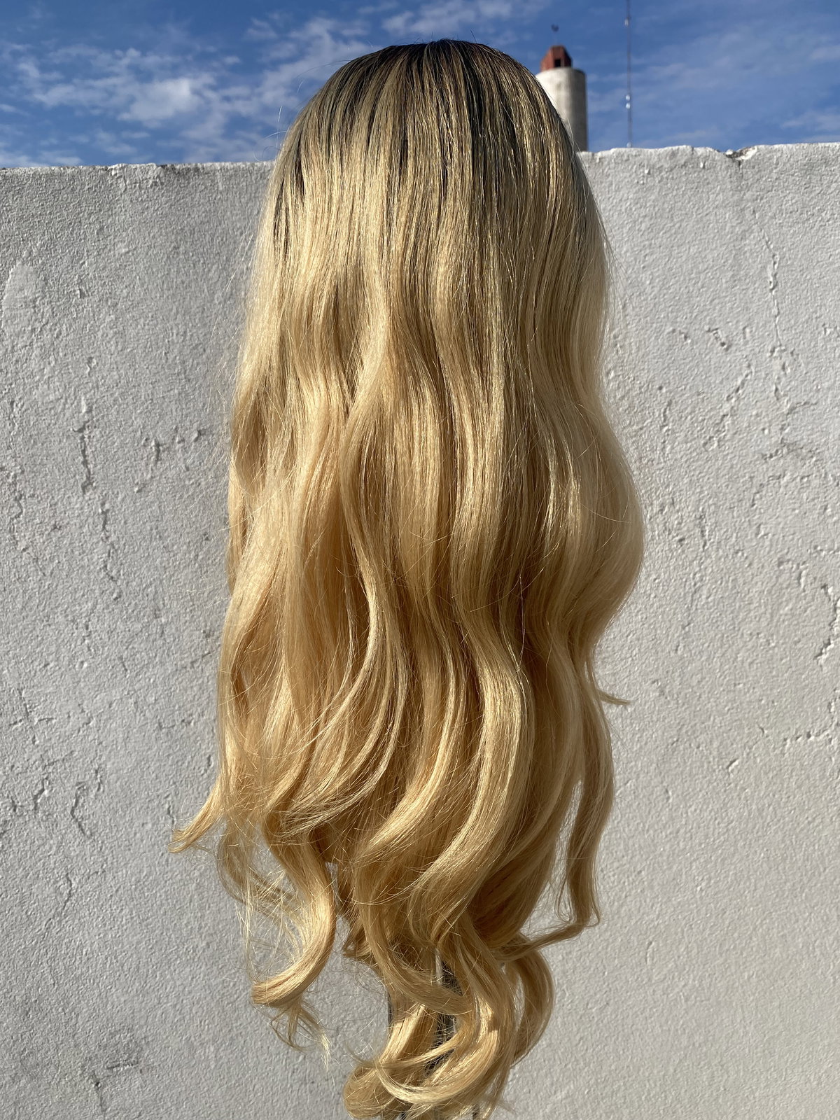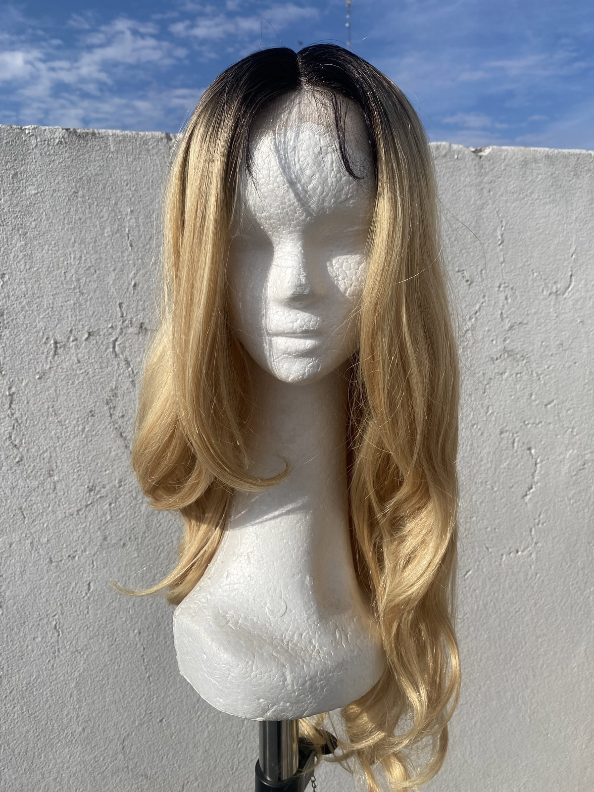Peluca sintética termorresistente, con lace en la linea central, casco elástico y peinetas internas para un mejor agarre.